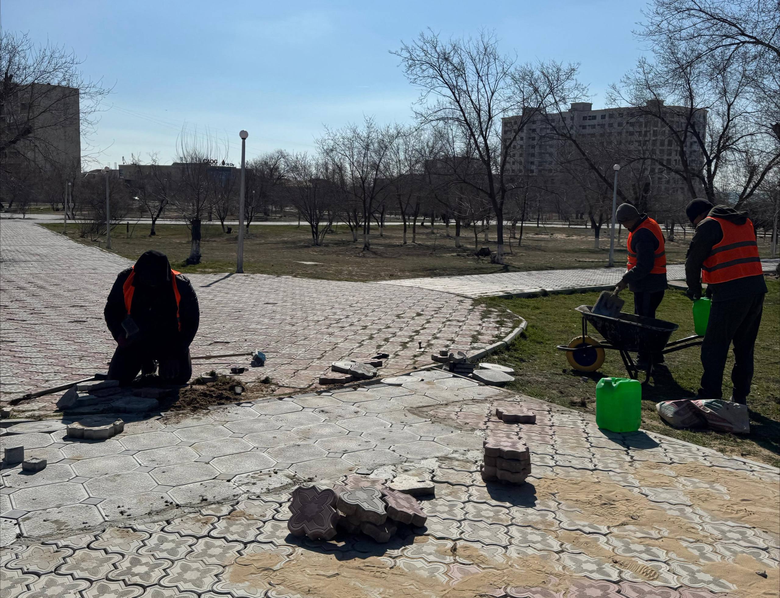 В настоящее время на территории города Актау активно проводятся работы по благоустройству и улучшению инфраструктуры. В частности, в разных микрорайонах города ведётся ремонт и восстановление пешеходных дорожек.