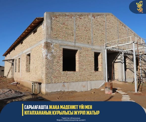САРЫАҒАШТА ЖАҢА МӘДЕНИЕТ ҮЙІ МЕН КІТАПХАНАНЫҢ ҚҰРЫЛЫСЫ ЖҮРІП ЖАТЫР