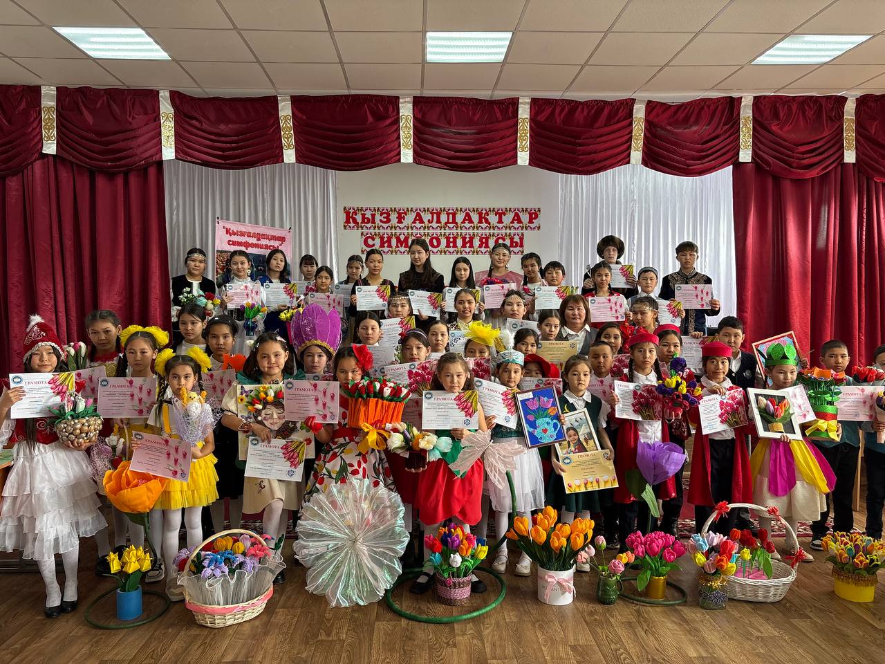 В конкурсе приняли участие ученики разных школ района. Ребята представили яркие и оригинальные работы — декоративные тюльпаны, выполненные из различных материалов: бумаги, ткани, фоамирана и других подручных средств.