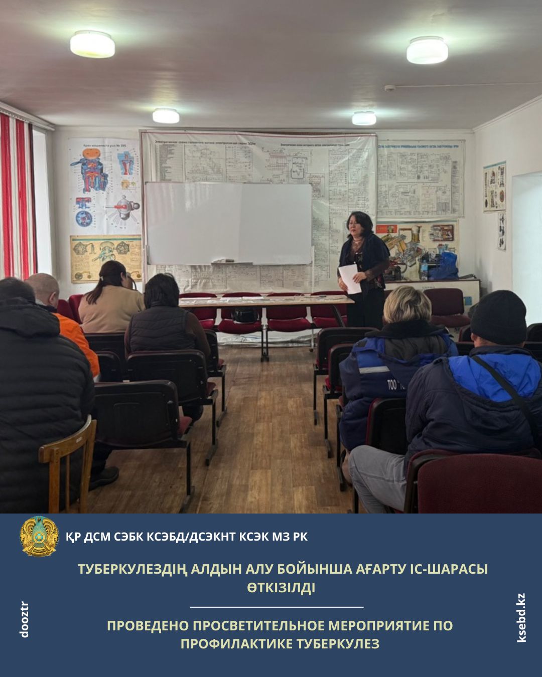 13 марта 2026 года в рамках мероприятий, приуроченных ко Всемирному дню борьбы с туберкулезом, под девизом «#Да! Мы можем победить туберкулез! Лидерство Казахстана. Инновации и сила людей» среди работников ТОО «Теміржолсу-Қараганда» станции Караганда-Сортировочная проведено просветительное мероприятие специалистами Карагандинского отделенческого управления санитарно–эпидемиологического контроля на транспорте.