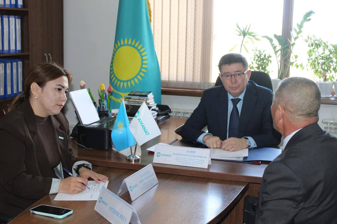 🔹 Сегодня, в Туркестанском областном филиале партии “AMANAT”, руководитель департамента Комитета Государственной инспекции труда по Туркестанской области Алиш Амангельды Салхудинович провел личный общественный прием по обращениям граждан.