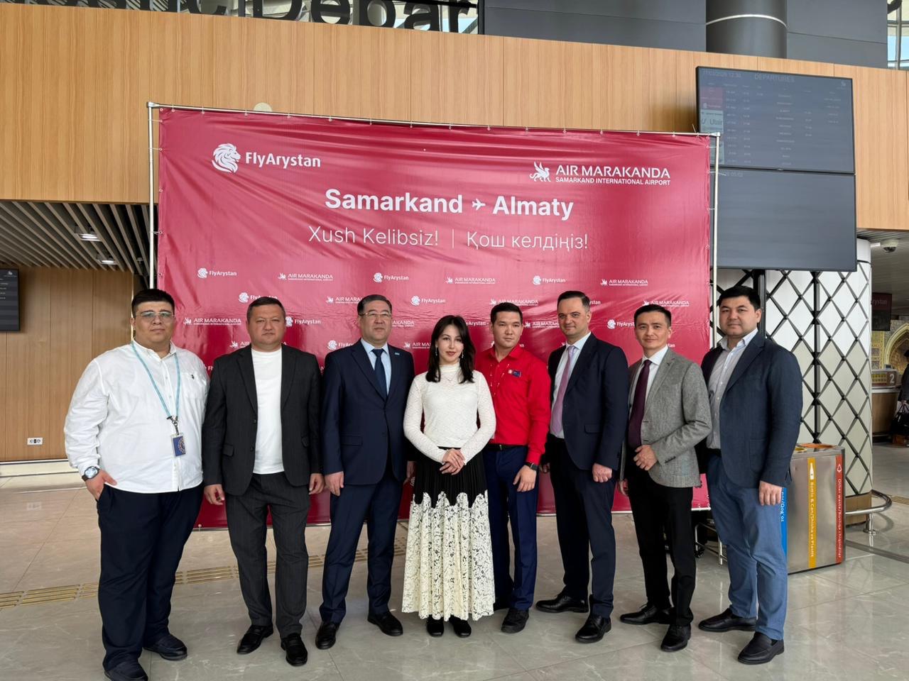 17 марта 2026 года в Международном аэропорту г.Самарканда состоялась торжественная церемония запуска прямого международного рейса авиакомпании-лоукостера «FlyArystan» по маршруту «Алматы – Самарканд – Алматы». В мероприятии приняли участие заместитель хокима Самаркандской области Рустам Кобилов, Генеральный консул Республики Казахстан в г.Самарканде Талгат Шарипов, а также руководство компаний «FlyArystan» и «Air Marakanda» (компания-оператор по управлению аэропортами), официальные гости, партнёры и представители СМИ.