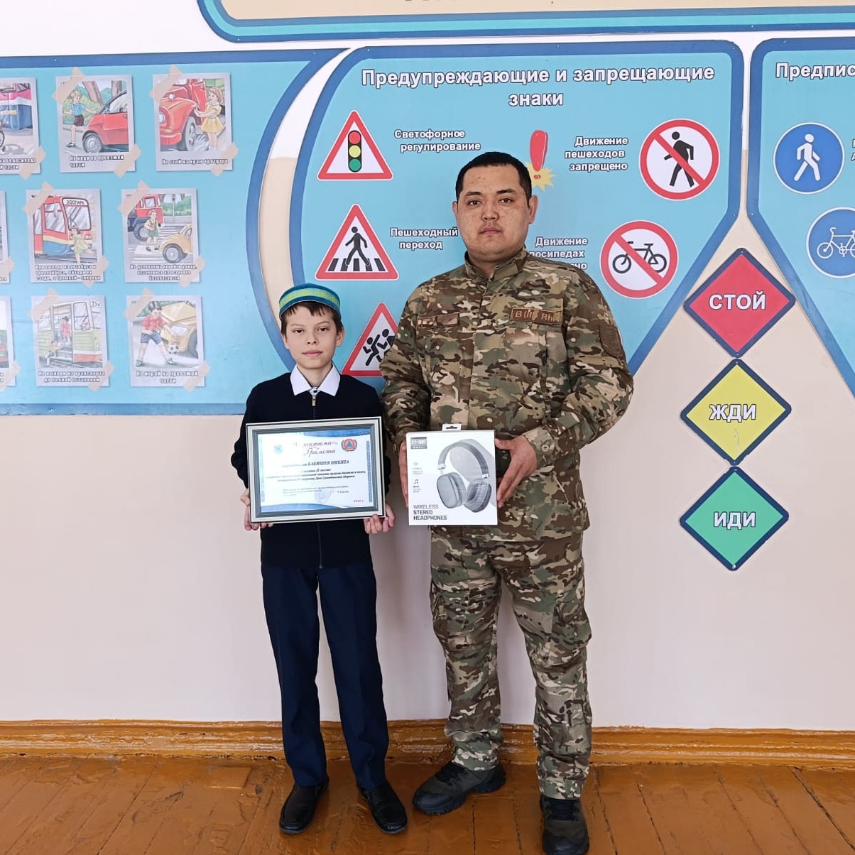 По итогам конкурса ученик 4 “В” класса Средней школы №6 города Алтай Бабишев Никита занял второе место. Сотрудники УЧС района Алтай поздравили Никиту с призовым местом, вручили грамоту от начальника Департамента по ЧС ВКО и ценный приз.
