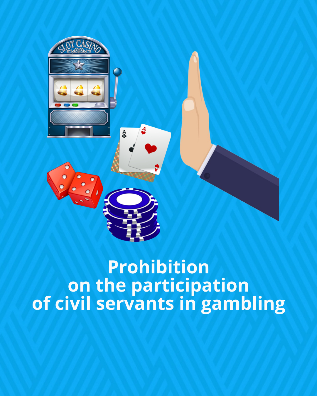 В соответствии с Законом РК от 08.07.24 г. № 116-VIII (введен в действие с 9 сентября 2024г.) пункт 1 статьи 12 антикоррупционных ограничений Закона Республики Казахстан «О противодействии коррупции» дополнен подпунктом 6, предусматривающий запрет на участие государственных служащих в азартных играх и пари.