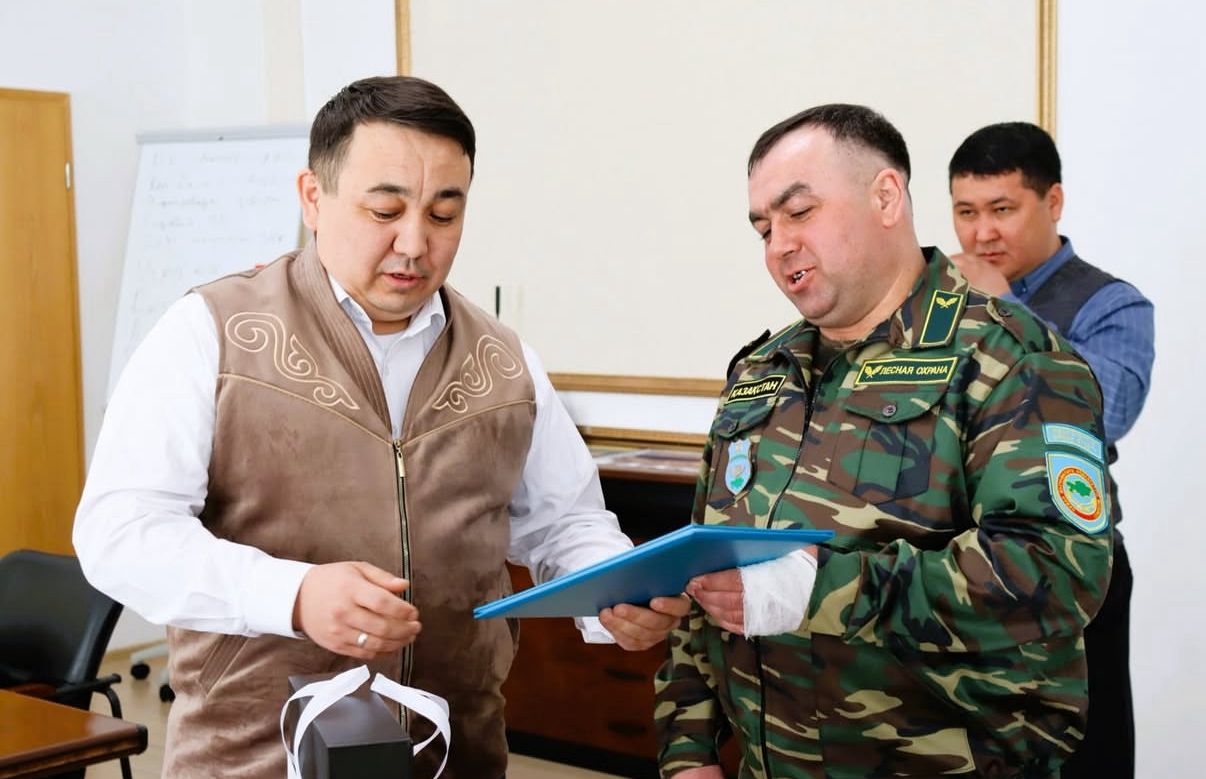 Кездесу барысында аудан әкімі Юрий Петровичке батылдығы мен азаматтық жауапкершілігі үшін алғыс хат табыстап, естелік сыйлық пен азық-түлік себетін ұсынды.