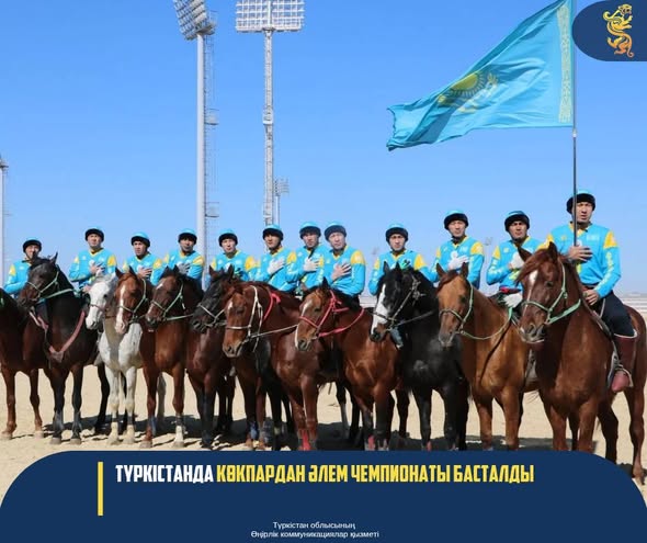 Сегодня в новом ипподроме в Туркестане стартовал чемпионат мира по кокпару. В соревнованиях принимают участие команды из 9 стран мира. В частности, Гран-при разыграют сборные Афганистана, Китая, Венгрии, Монголии, Российской Федерации, Таджикистана, Узбекистана, Турции и Казахстана.