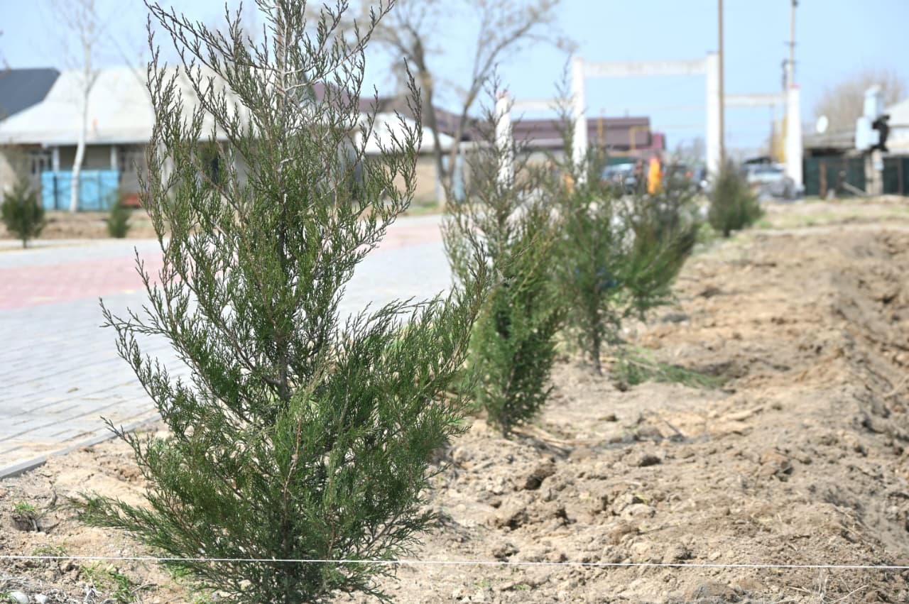 Глава района Серик Мамытов принял личное участие в мероприятии, высадив деревья в парке «Тәуелсіздік» поселка Асыката, где сейчас ведутся восстановительные работы.