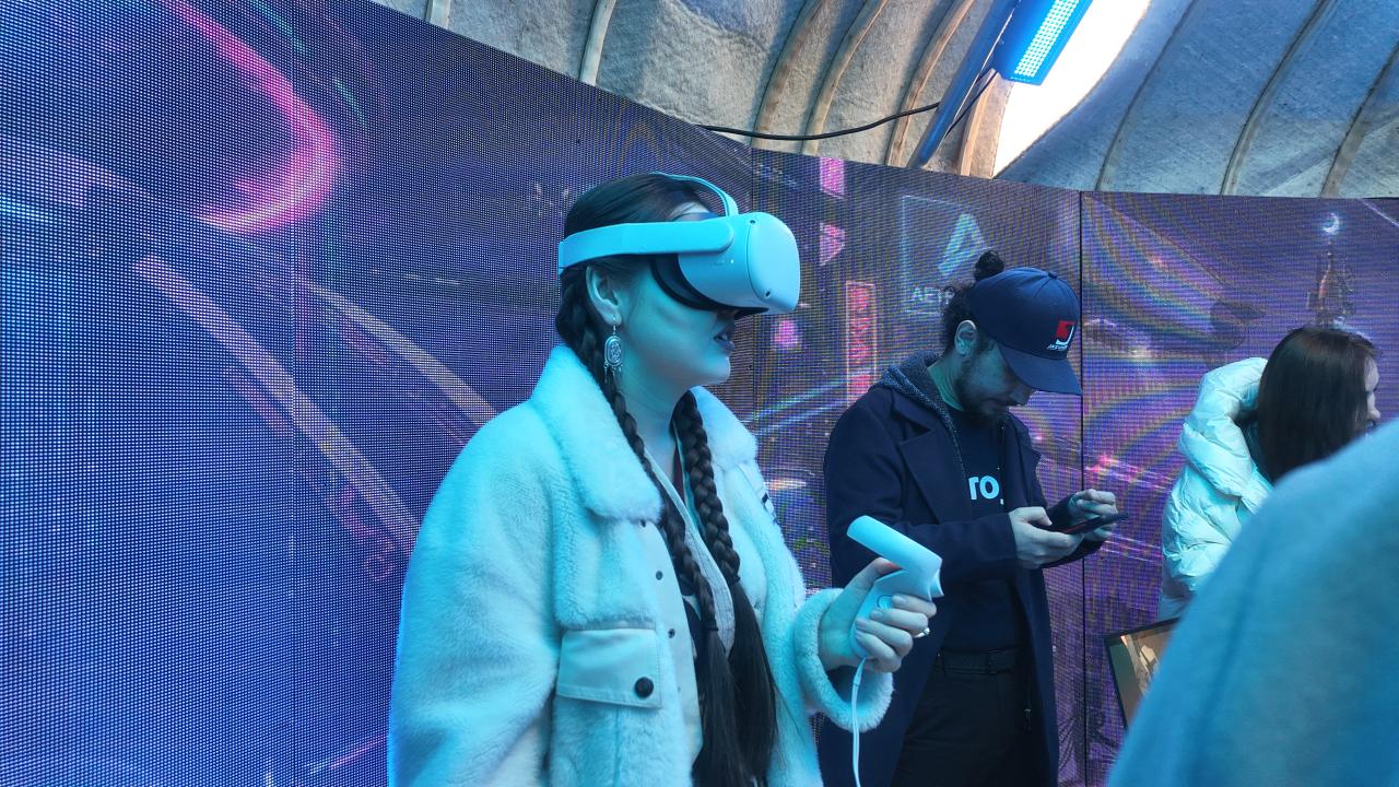 Внутреннее пространство юрты полностью оснащено интерактивными LED-экранами. Здесь посетители могут с помощью VR-очков совершить онлайн-путешествие по историческим и сакральным местам Актюбинского региона. Кроме того, на выставке были представлены гуманоидные роботы, демонстрирующие современные возможности цифровых технологий.