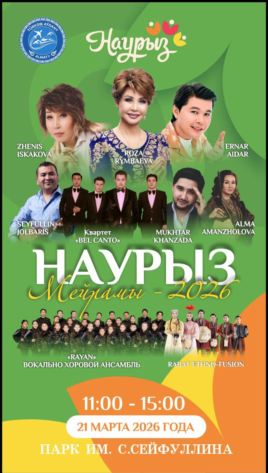 В программе — концерт с участием звёзд казахстанской эстрады, национальные игры, конкурсы и различные праздничные активности для всей семьи.