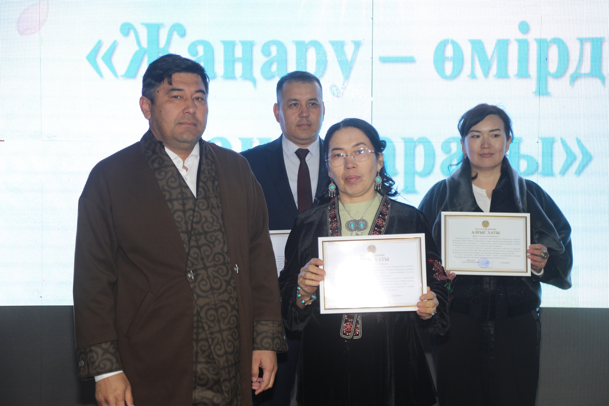 В ходе праздника заместитель акима района Н.Бохаев наградил благодарственным письмом акима района сотрудников и коллективов искусств, проявивших активность в сфере культуры и искусства.