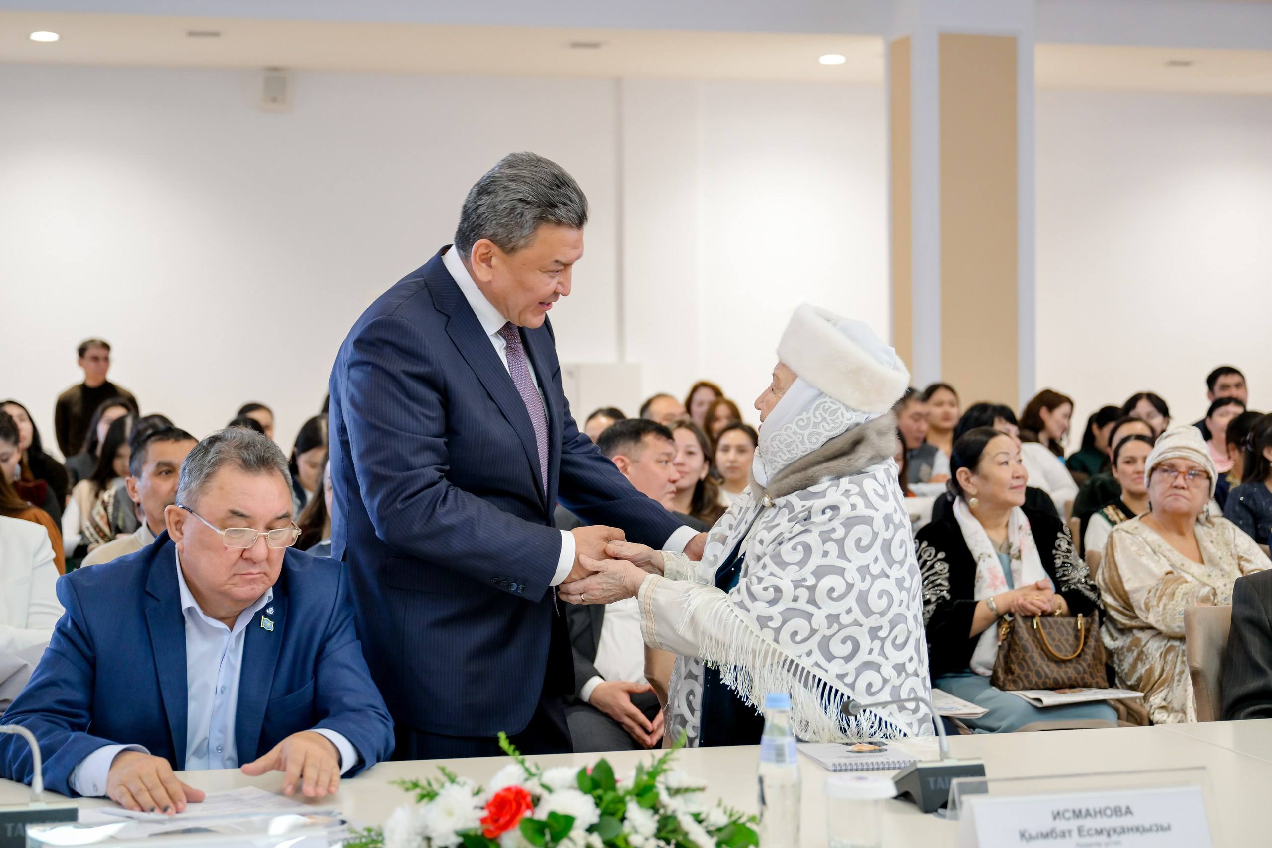 Особую значимость юбилейному мероприятию придало участие советника Президента Малика Отарбаева. От имени Главы государства он вручил ордена «Құрмет» и медали «Ерен еңбегі үшін» сотрудникам газеты, которые на протяжении многих лет трудятся в главном очаге казахской прессы региона. Всего в ходе мероприятия были награждены 13 человек.
