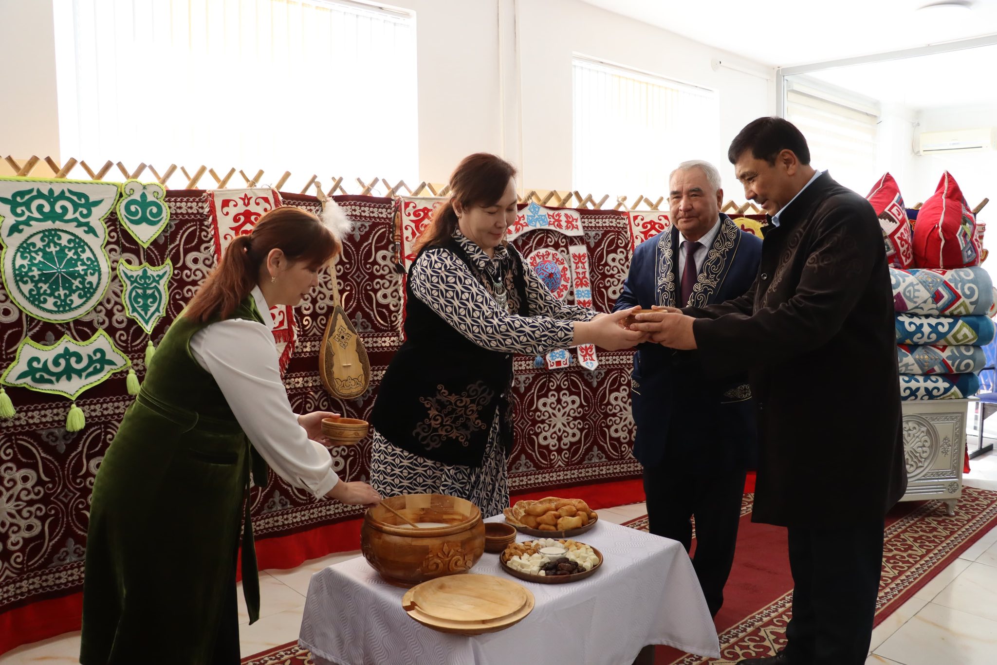 Аким района Еркегали Алимкулов и председатель районного маслихата Нурлан Койбагаров поздравили всех жителей с Днём национальной одежды и подчеркнули важность уважения национальных ценностей.