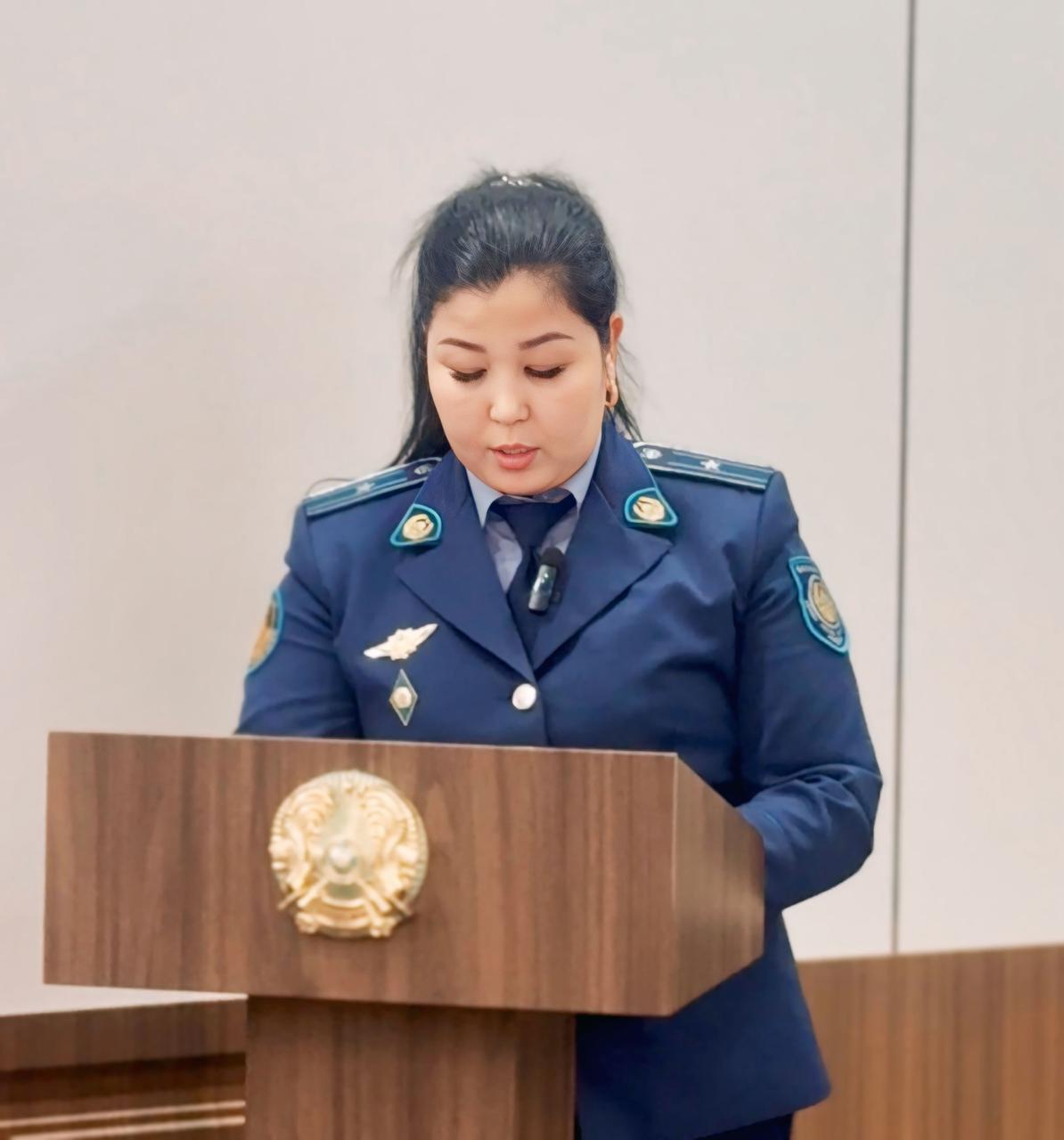 С основным докладом по повестке дня выступила исполняющая обязанности начальника отдела службы пробации Мунайлинского района Департамента уголовно-исполнительной системы по Мангистауской области, майор юстиции Тлектес Худайбергенова.
