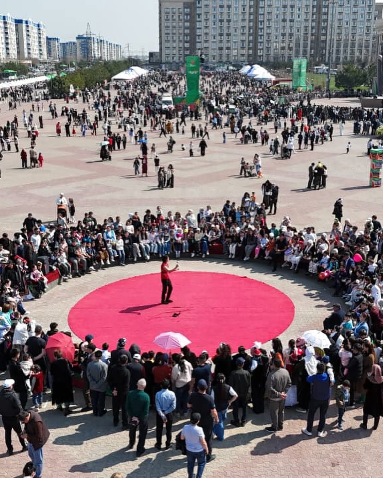 🔸В рамках праздничной программы звучали традиционные песни, исполнялись зажигательные танцы, была организована выставка изделий казахского декоративно-прикладного искусства. Также вниманию гостей были представлены персонажи в образах батыров, демонстрация ловчих птиц — беркута, а также казахской породы собак — тазы, и аниматоры для детей.