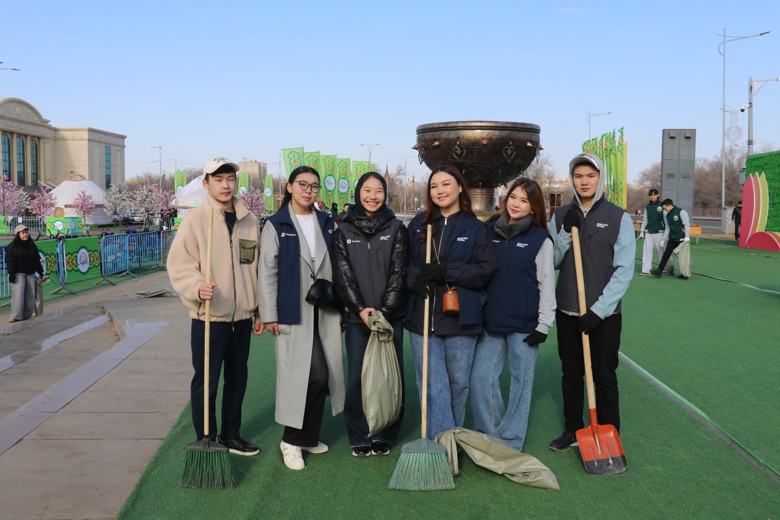 В Актюбинской области в рамках декады Наурызнама 23 марта в день «Тазару күні» молодежь организовала работы по очистке территории у стелы «Қазақ халқына мың алғыс».