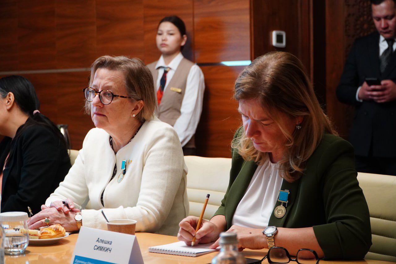 В рамках форума Dala Carbon Forum 2026 аким Акмолинской области Марат Ахметжанов провел встречу с послом Европейского Союза в Республике Казахстан Алешкой Симкич и послом Соединённого Королевства Великобритании и Северной Ирландии Салли Аксуорси.