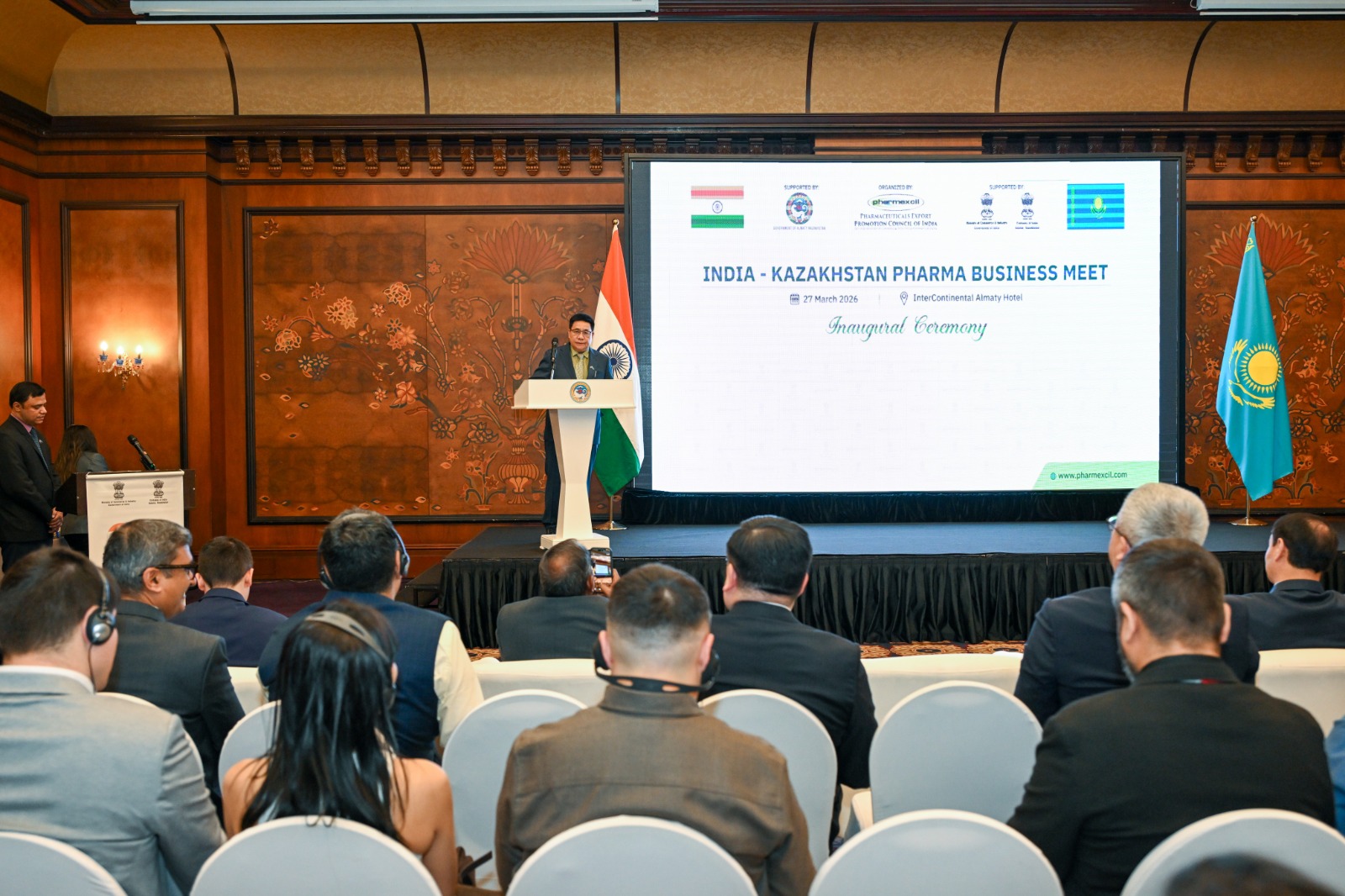 Алматы, 27 марта 2026 года – Заместитель министра иностранных дел РК Алибек Куантыров принял участие в бизнес-форуме «Kazakhstan–India Pharma Business Meeting», целью которого является развитие и углубление казахстанско-индийского сотрудничества в фармацевтической отрасли.