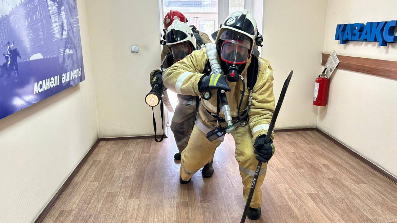 В рамках Дня гражданской обороны с личным составом специализированной пожарной части №2 УЧС города Тараз проведено пожарно-тактическое занятие в административном здании Жамбылского областного филиала акционерного общества «Казахстан темир жолы». В учениях также принял участие личный состав Центра медицины катастроф. Всего было задействовано 5 единиц техники и 20 человек личного состава. Согласно тактическому сценарию, возгорание произошло в одном из рабочих кабинетов на втором этаже здания из-за нарушения требований пожарной безопасности. До прибытия пожарных сотрудники объекта предприняли первичные меры по тушению пожара. Прибывшие на место спасатели оперативно и профессионально выполнили свои задачи. На месте происшествия работали два боевых участка и одно звено газодымозащитной службы, которые осуществляли тушение пожара и спасательные работы. Также с помощью автолестницы с второго этажа был спасён один человек. Пострадавшим была оказана первая доврачебная помощь сотрудниками Центра медицины катастроф. В завершении учений сотрудники Управления по чрезвычайным ситуациям разъяснили работникам АО «Казахстан темир жолы» порядок действий при возникновении пожара. Кроме того, они продемонстрировали правила использования огнетушителей и ознакомились с особенностями объекта.