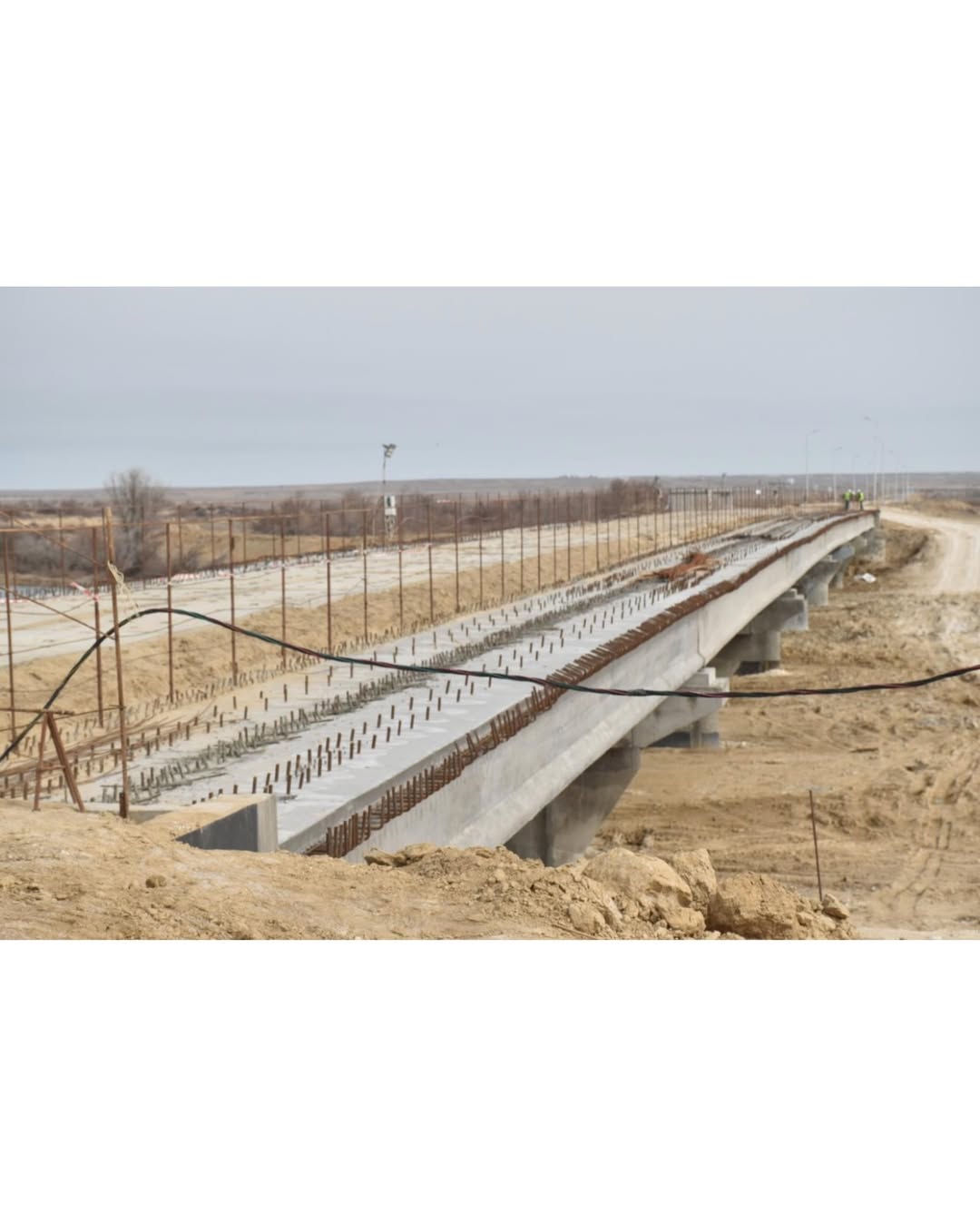 🔹Они проверили ход строительства моста на въезде в село Уил. ТОО «Тенгизстройсервис Групп» проводит работы по его реконструкции. В настоящее время мост полностью разобран. Для организации временного передвижения транспорта на участке дороги установлены восемь опор и уложены плиты. Также установлены 56 пролетных балок, и проезжая часть моста готова для временного автомобильного движения. Завершение проекта запланировано на этот год.