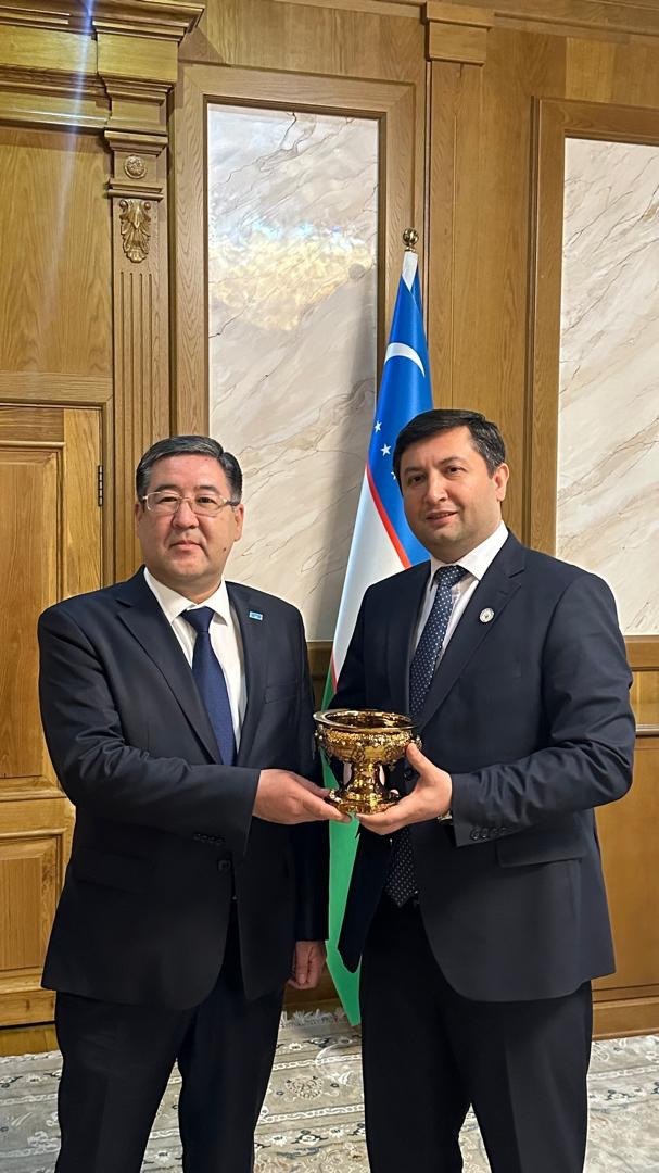 27 марта 2026 года Генеральный консул Республики Казахстан в г.Самарканде Талгат Шарипов встретился с исполняющим обязанности ректора Международного университета туризма и культурного наследия «Шёлковый путь» Мухсинжоном Холмухамедовым.