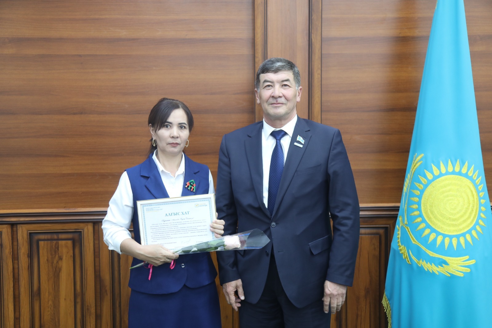 В ходе торжественного мероприятия председатель районного маслихата, руководитель общенациональной коалиции «За народную Конституцию справедливого и прогрессивного Казахстана!» в рамках референдума Базарбай Тореахметов, а также председатель районного совета ветеранов Адилбек Айымбетов поздравили награждённых и подчеркнули важность данного ответственного периода.