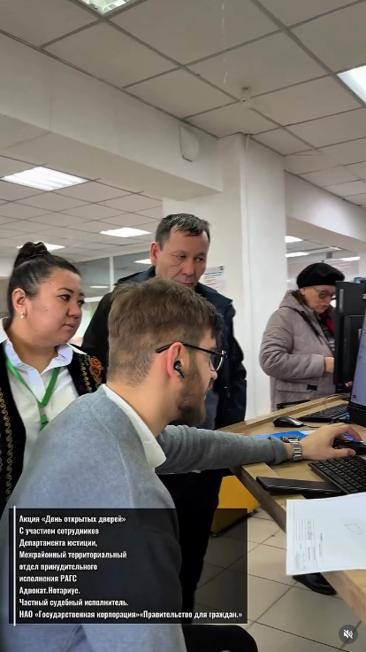 В Центре обслуживания населения города Экибастуз состоялся день открытых дверей. В мероприятии приняли участие нотариусы Н. Абельдинова и А. Шаймарданова, адвокат Е. Мусабеков, частный судебный исполнитель С. Касенов, руководитель отдела регистрации актов гражданского состояния по городу Экибастуз Д. Кусаинова, сотрудник Экибастузского межрайонного территориального отдела принудительного исполнения А. Бельгишева, а также исполняющая обязанности руководителя ЦОНа города Экибастуз М. Мадиярова.