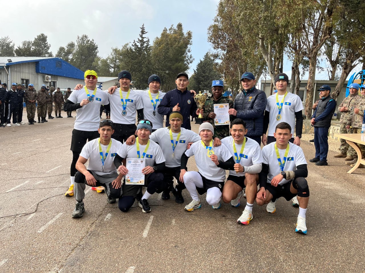 Кроме того, казахстанские военнослужащие выступили инициаторами спортивных состязаний с участием миротворческих контингентов Индии, Непала, Уругвая и Фиджи. В программу вошли приседания с отягощением, эстафета с препятствиями, перетягивание каната, армрестлинг и поднятие гири.