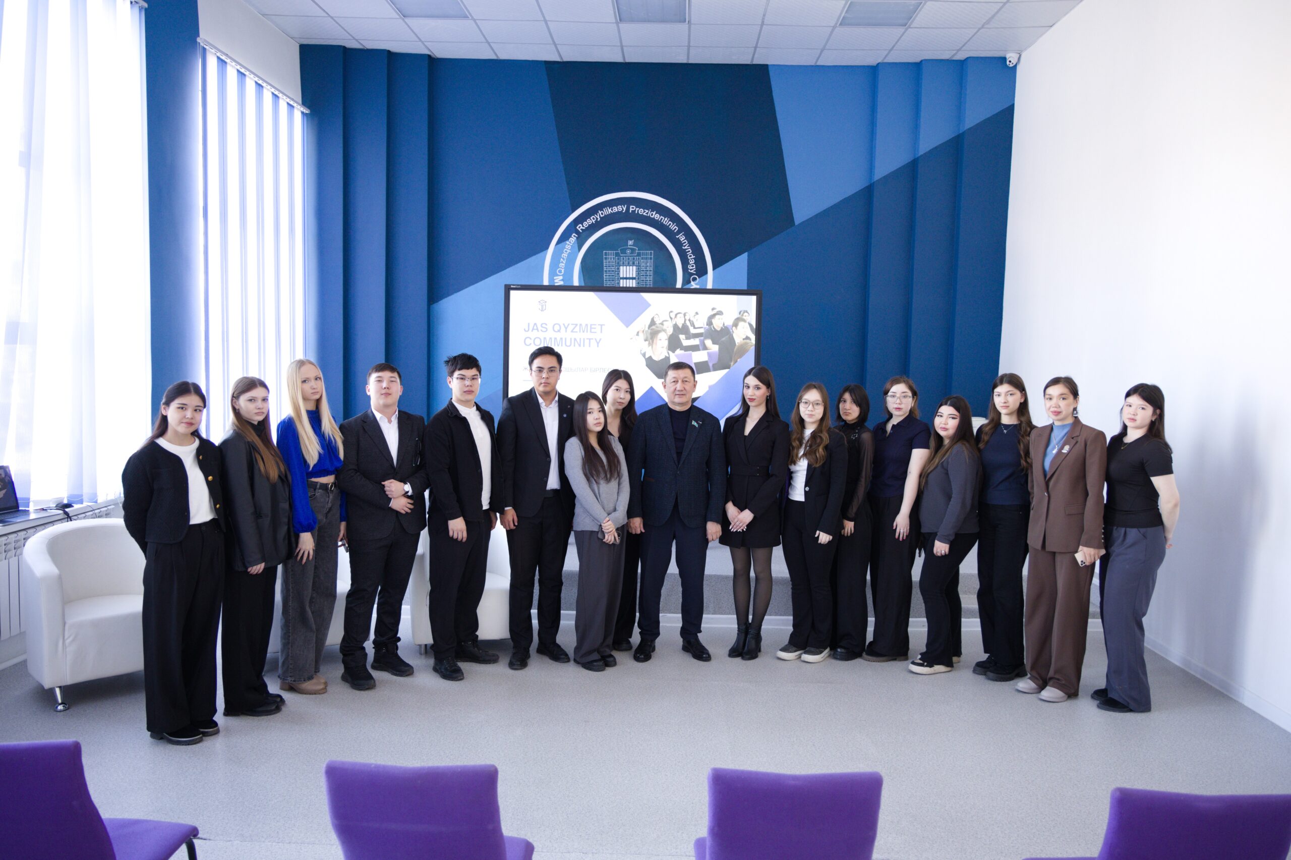 Председатель областного маслихата Кобжанов Н.С. встретился с молодыми участниками-студентами диалоговой площадки «JasQyzmet Community», организованной при филиале Академии государственного управления при Президенте Республики Казахстан по Карагандинской области.