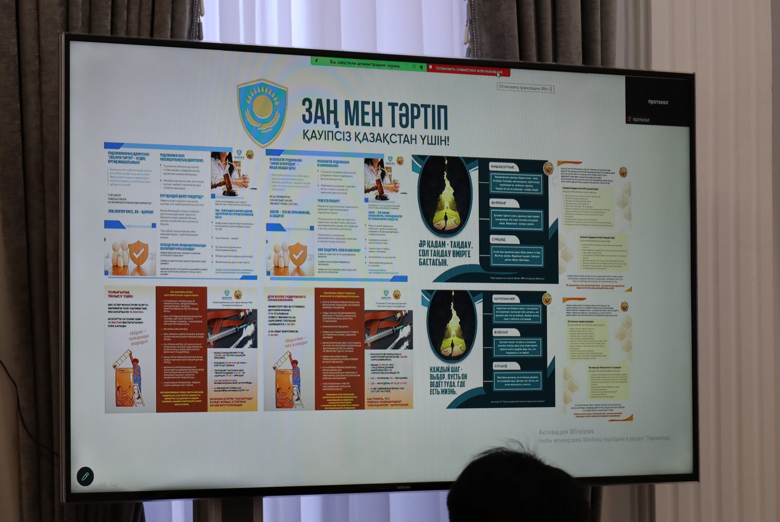 Особое внимание аким района уделил реализации идеологемы «Закон и порядок». Отмечена необходимость усиления работы в данном направлении, системного проведения разъяснительных и информационных мероприятий во всех населённых пунктах. Даны поручения по обеспечению размещения соответствующих информационных материалов в государственных учреждениях и общественных местах, а также по повышению правовой культуры населения.
