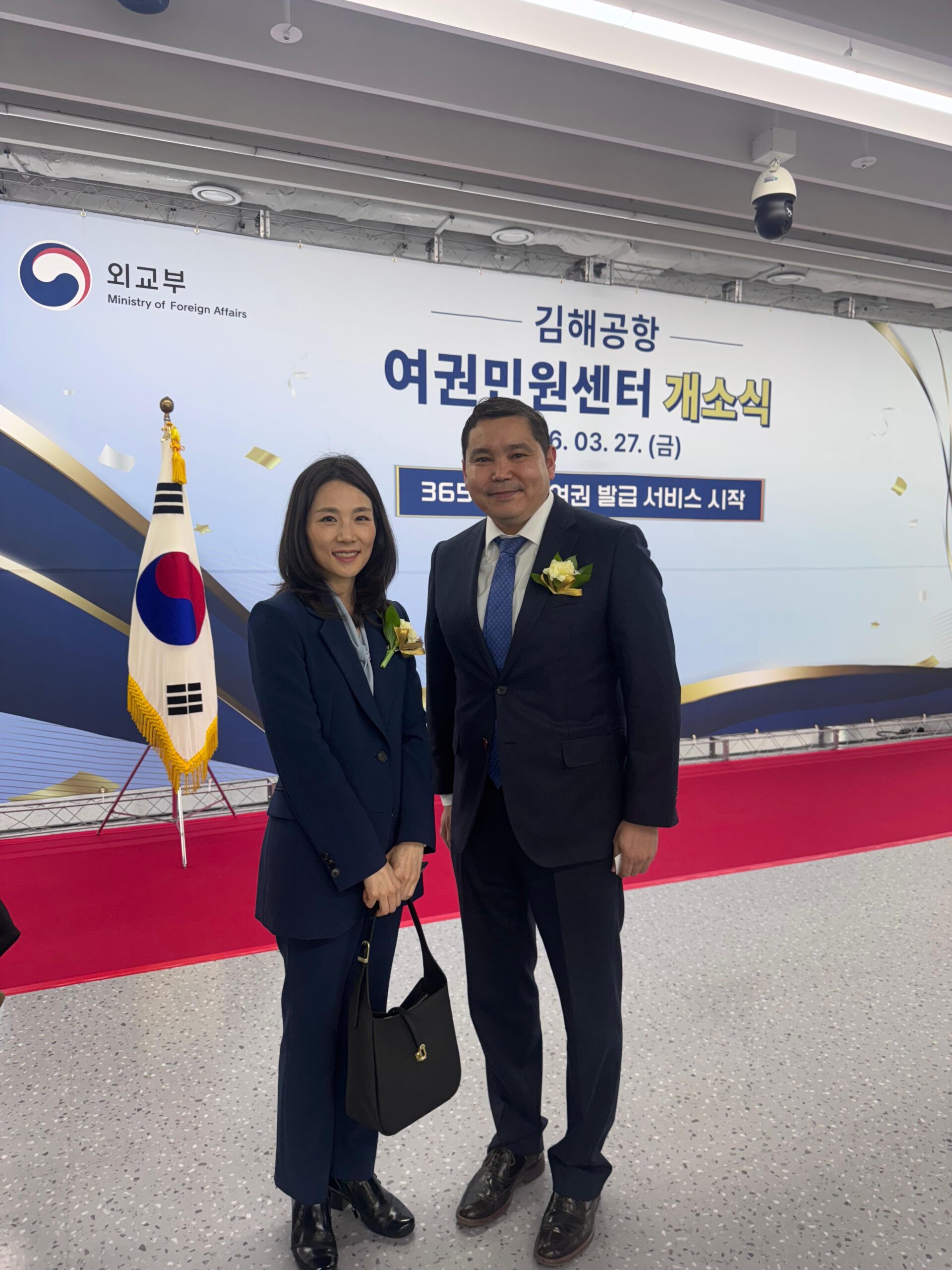 27 марта 2026 года Генеральное консульство Республики Казахстан в городе Пусан приняло участие в торжественной церемонии открытия Центра паспортных услуг в международном аэропорту Кимхэ (г. Пусан).