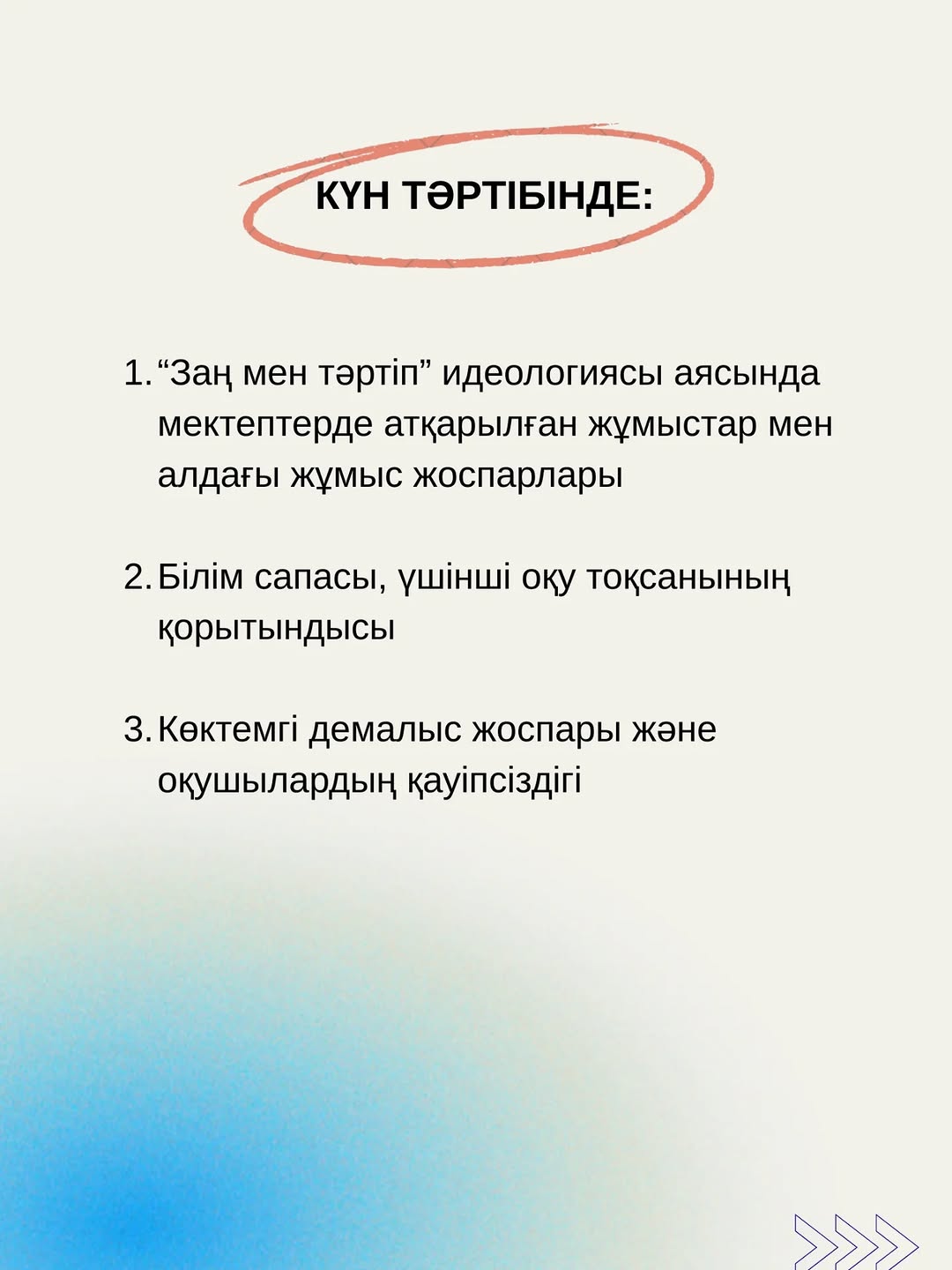 Жиналыс барысында оқушылардың оқу үлгерімі, тәртібі, қауіпсіздігі және тәрбие жұмыстары туралы маңызды мәселелер қарастырылады.