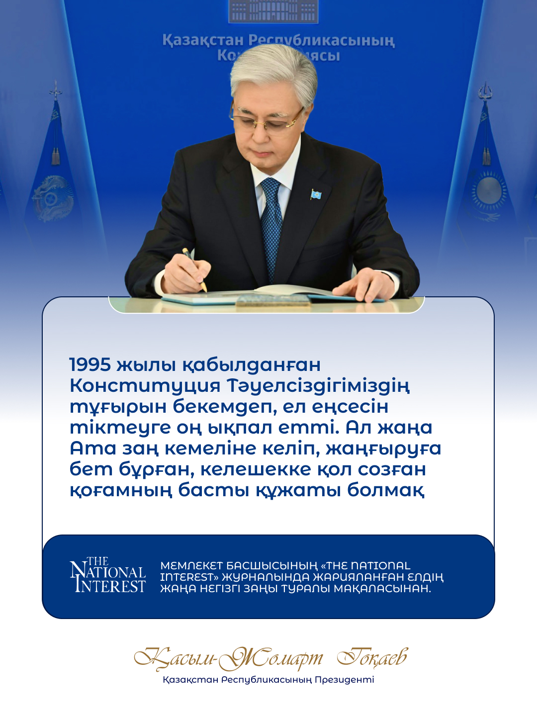 Из статьи Президента Касым-Жомарта Токаева, опубликованной в журнале «The National Interest», о новой Конституции страны.