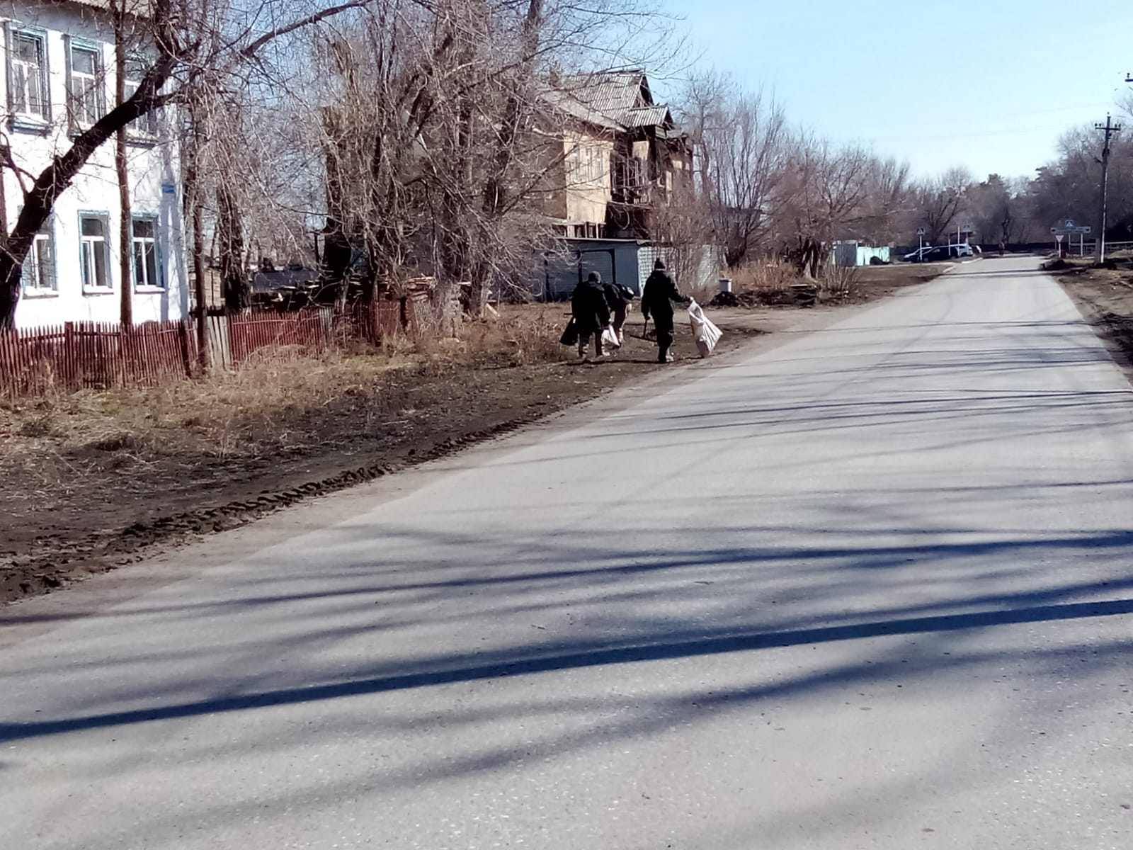 Продолжается работа по расчисте основных улиц поселка Кушмурун от мусора.