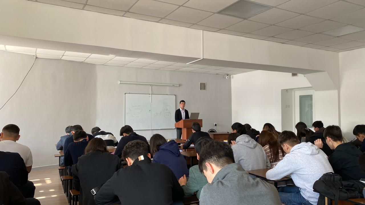 Инспектор отдела регистрации и контроля некоммерческих организаций Департамента юстиции города Алматы Базаршынов Е.Ж. выступил перед студентами, подробно разъяснив вопросы противодействия коррупции, а также её негативные социально-правовые последствия.