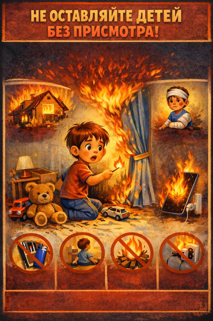 Не оставляйте детей без присмотра даже на несколько минут. Игра со спичками, зажигалками, розетками, зарядными устройствами и мобильными телефонами может привести к пожару и тяжелым травмам. Чтобы избежать беды: • храните спички, зажигалки и другие источники огня в недоступном для детей месте; • не разрешайте детям самостоятельно пользоваться электроприборами и зарядками; • объясняйте ребенку, чем опасен огонь; • не оставляйте детей одних дома. Если произошел пожар, немедленно звоните по номерам 112 или 101.