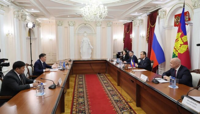 В ходе визита прошла встреча с Губернатором Краснодарского Края Вениамином Кондратьевым. Стороны обсудили ключевые направления межрегионального казахстанско-российского сотрудничества, уделив особое внимание вопросам расширения торгово-экономических связей, гуманитарного взаимодействия и межвузовского партнёрства.