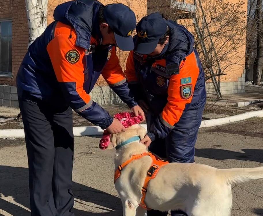 Спасатели Восточно-Казахстанской области проводили на заслуженный отдых своего четвероногого коллегу – лабрадора по кличке Источник Счастья Виллингтон.