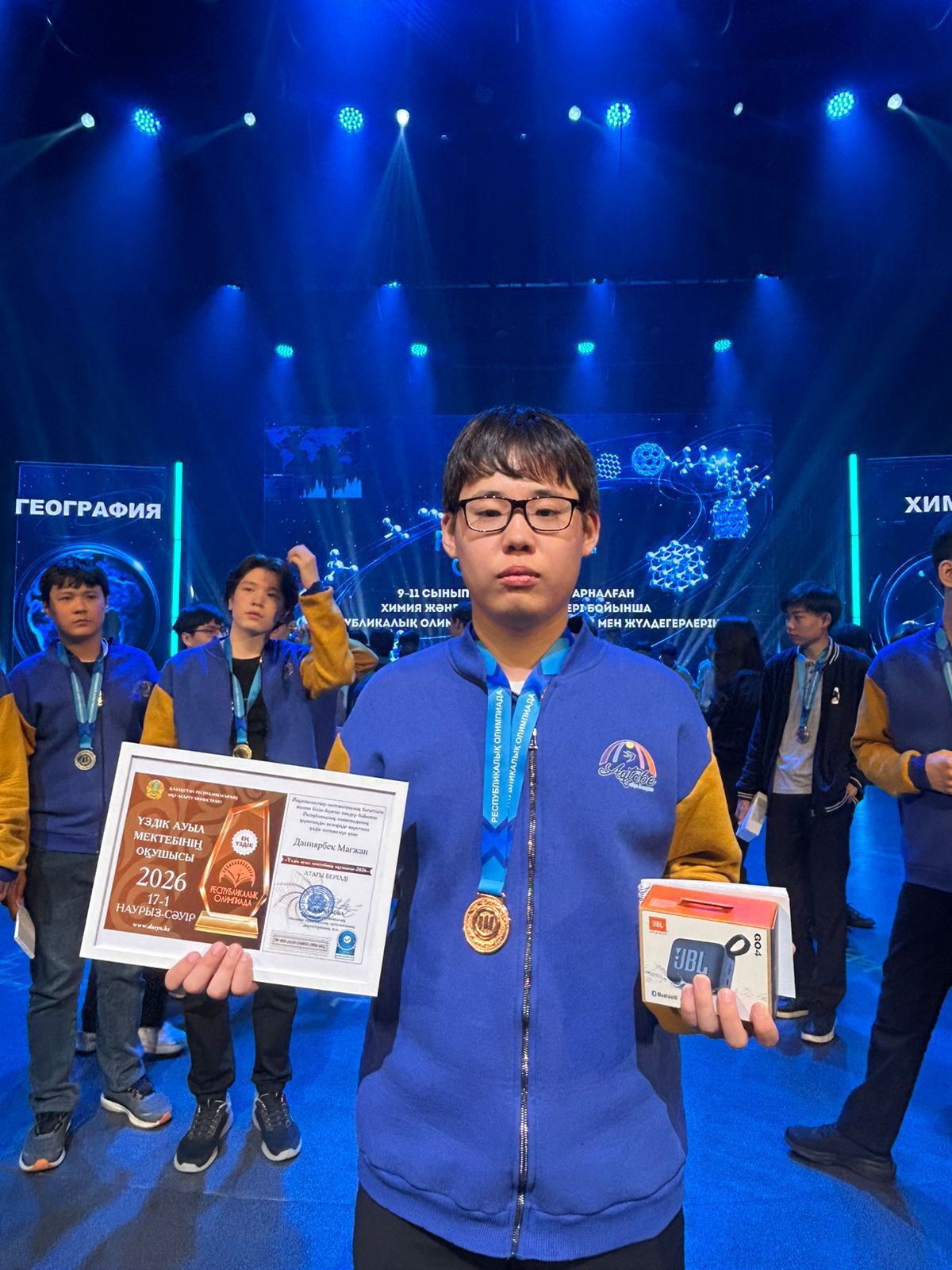 Высокая награда стала признанием его упорного труда, стремления к знаниям и отличных результатов, продемонстрированных на Республиканской олимпиаде среди учащихся сельских школ.