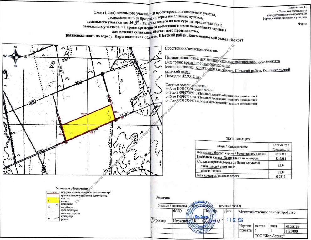 1) бизнес-план (прогнозный объем инвестиций, площади возделывания сельскохозяйственных культур, поголовье сельскохозяйственных животных, применяемые агротехнологии, наличие сельскохозяйственной техники и технологического оборудования, квалифицированных специалистов в области сельского хозяйства, количество создаваемых рабочих мест);2) обязательства по составлению и освоению проекта внутрихозяйственного землеустройства, выполнению мероприятий по развитию сельскохозяйственной инфраструктуры; 3) обязательства по исполнению требований земельного законодательства Республики Казахстан, включая Правил рационального использования земель сельскохозяйственного назначения и Правил рационального использования пастбищ, выполнению индикативных показателей по диверсификации структуры посевных площадей сельскохозяйственных культур в соответствии со специализацией региона, соблюдению научно-обоснованных агротехнологий, фитосанитарных и карантинных требований. Конкурсное предложение представляется участником конкурса в закрытом конверте, отпечатанное или написанное несмываемыми чернилами в прошитом виде с пронумерованными страницами, где последняя страница заверяется: подписью участника – для физических лиц (или доверенного лица) и подписью первого руководителя (или доверенного лица) и печатью (при ее наличии) – для юридических лиц. Прием и регистрация заявок на участие в конкурсе производится по истечении тридцати календарных дней со дня опубликования извещения о проведении конкурса с «06» апреля 2026 года по «24» апреля 2026 года с 09.00 до 18:00 часов. Со схемой размещения земельных участков, выставляемых на конкурс можно ознакомиться на интернет-ресурсе местного исполнительного органа и с уголков информации сельских округов и районного отдела земельных отношений, архитектуры и градостроительства. Участник запечатывает предложение (конкурсную заявку) в конверт, указывается надпись «Конкурс по предоставлению права временного возмездного землепользования (аренды) для ведения крестьянского или фермерского хозяйства, сельскохозяйственного производства»   и “НЕ ВСКРЫВАТЬ ДО ___ часов “__” __________ _____ года” (указывается точное время и дата). Более подробную информацию можно получить в ГУ «Отдел земельных отношений, архитектуры и градостроительства Шетского района» Карагандинской области по телефонам: 8710-31-21-2-70.