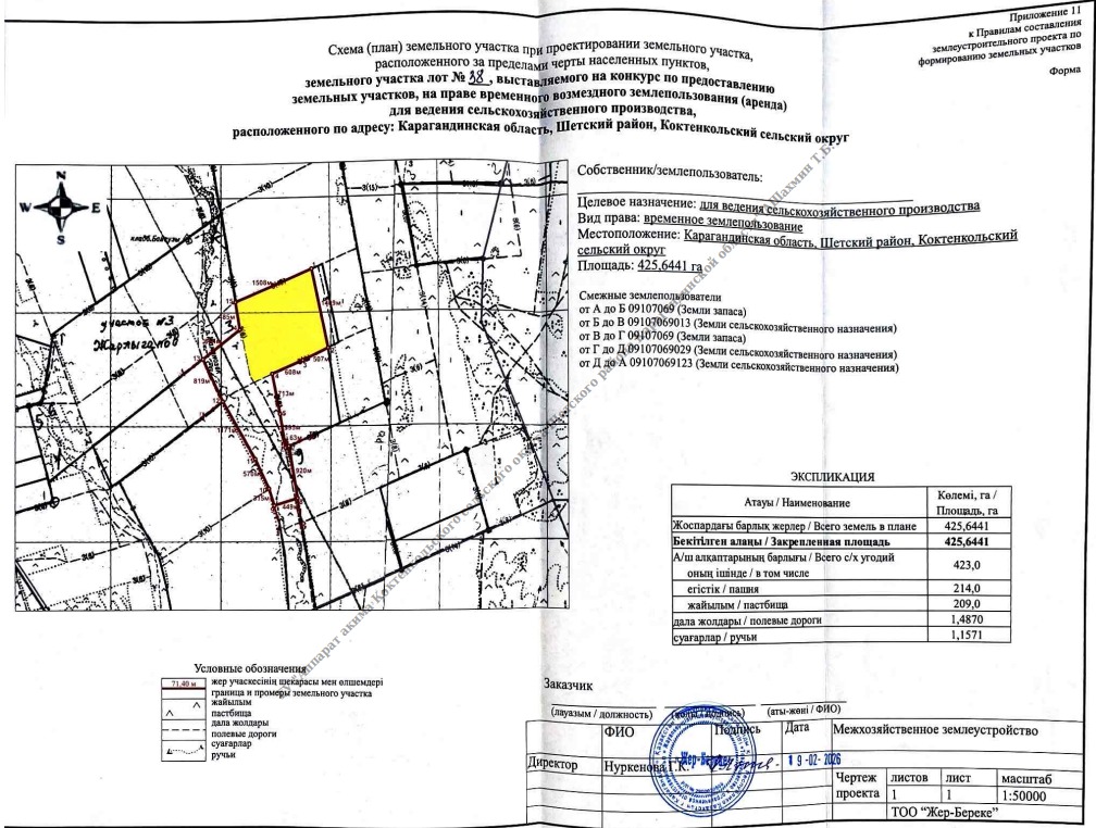 ИНФОРМАЦИОННОЕ СООБЩЕНИЕ Перечень земельных участков выставляемых на конкурс по предоставлению права временного возмездного землепользования (аренды) для ведения крестьянского или фермерского хозяйства, сельскохозяйственного производства из земель сельскохозяйственного назначения Государственным учреждением «Аппарат акима Шетского района»