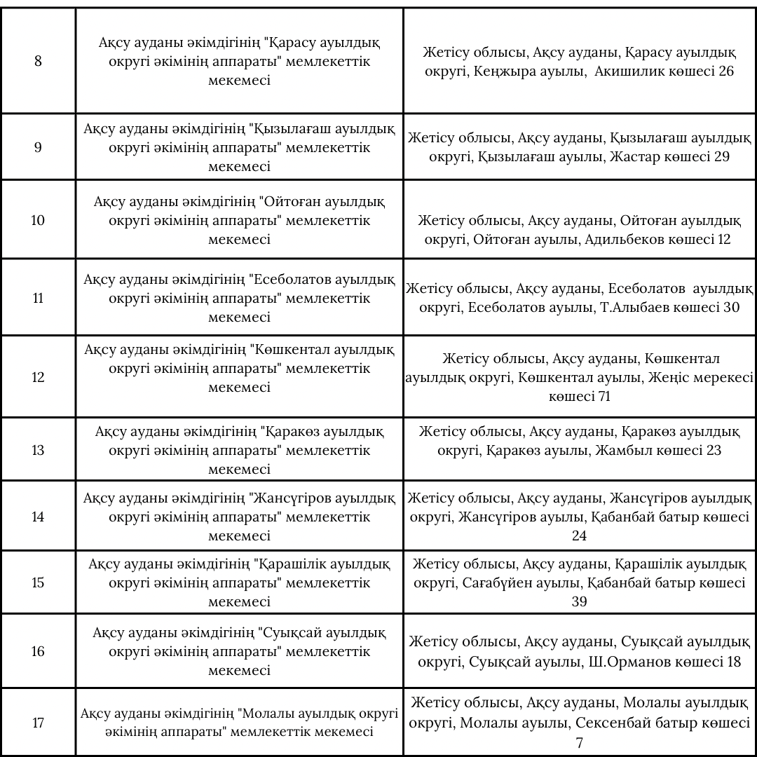 Обновленный список «Кабинетов права» открытых в сельских местностях области Жетісу.