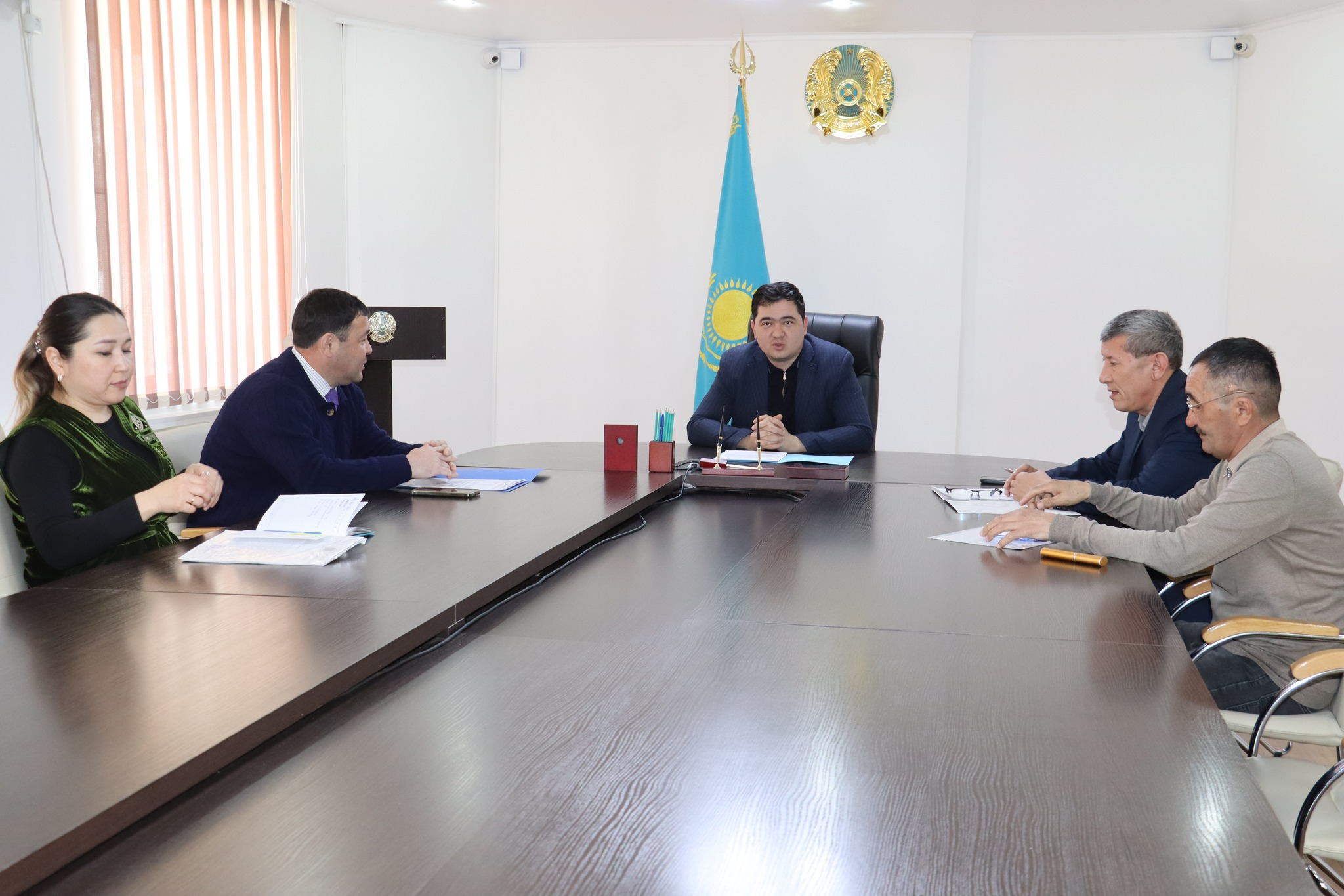 На совещании руководитель Сырымской районной территориальной инспекции Азамат Инсапович выступил с докладом об организации мероприятий по борьбе с вредителями рода саранча по Каратобинскому району на повестке дня.