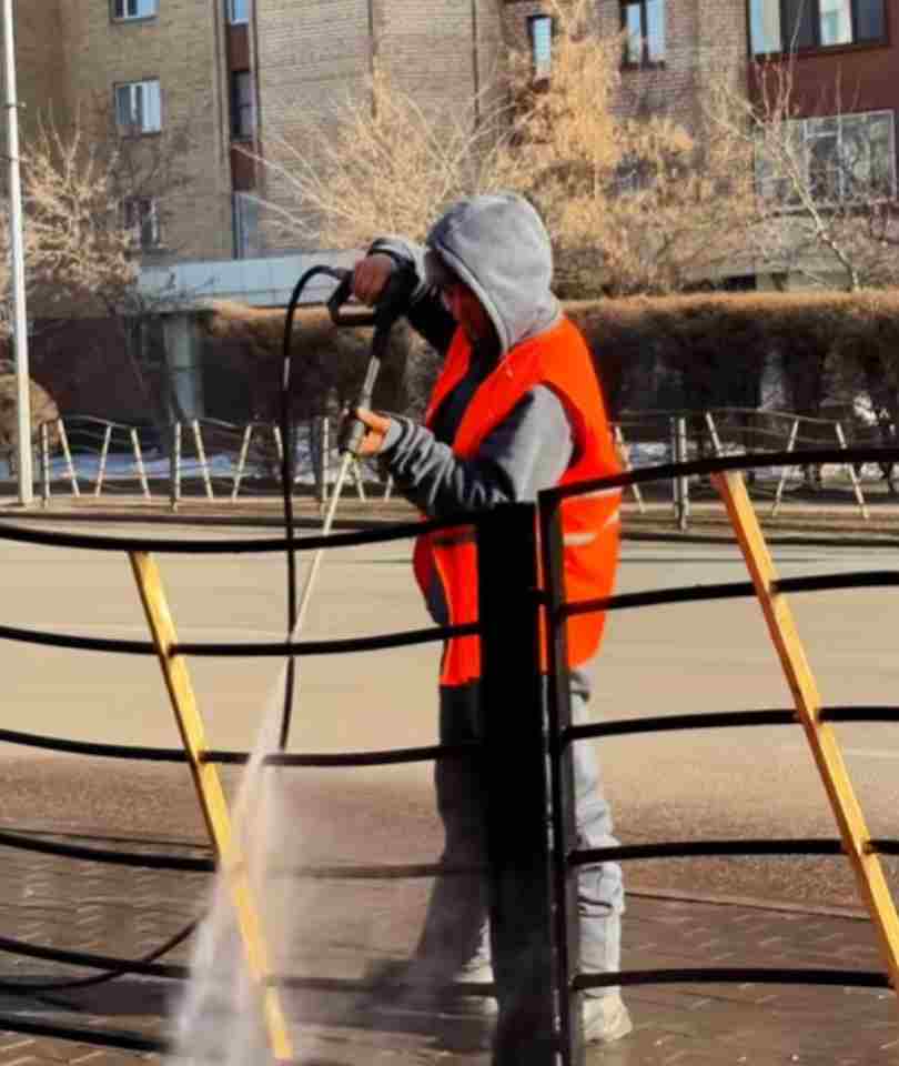 В этот день в районе поэтапно начались работы по очистке дорожного покрытия, дорожных знаков, ограждений, подземных переходов и дворовых территорий от пыли и грязи, накопившихся за зиму.