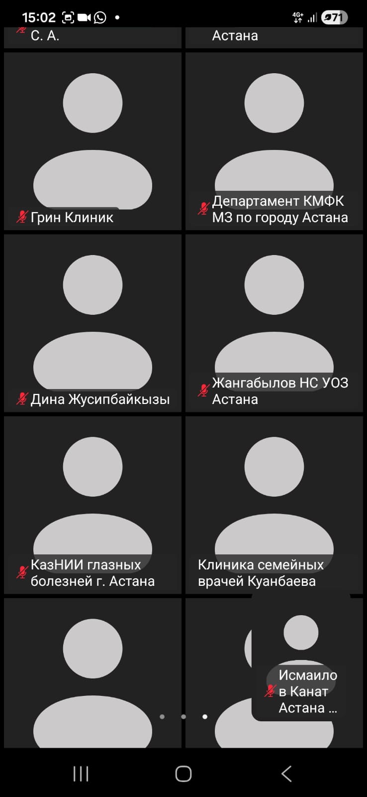 31 марта 2026 года Департамент регулирования и контроля в сфере социальной защиты населения про г Астана совместно с Департаментом Комитета медицинского и фармацевтического контроля МЗ РК по городу Астана, Управлением общественного здравоохранения города Астаны провели совещание на тему «Актуальные вопросы взаимодействия службы медико-социальной экспертизы и организаций здравоохранения». Были рассмотрены следующие вопросы: Необоснованные направления на МСЭ по итогам первого квартала 2026 года, качество работы ВКК поликлиник. О мерах по снижению необоснованных направлений. В работе совещания приняли участие главврачи и председатели ВКК медучреждений столицы. Совещание проходило в Формате Zoom конференции, всего приняло участие более 100 человек.