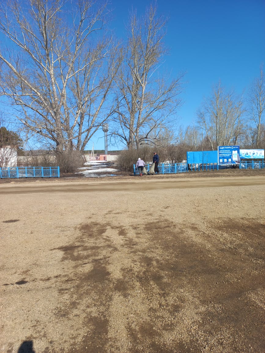 ​Наши рабочие по благоустройству уже вовсю приводят территорию в порядок, убирая мусор, скопившийся за долгую зиму.