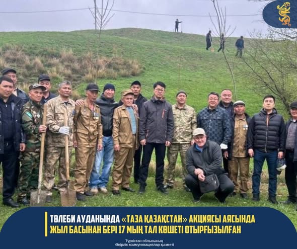ТӨЛЕБИ АУДАНЫНДА «ТАЗА ҚАЗАҚСТАН» АКЦИЯСЫ АЯСЫНДА ЖЫЛ БАСЫНАН БЕРІ 17 МЫҢ ТАЛ КӨШЕТІ ОТЫРҒЫЗЫЛҒАН