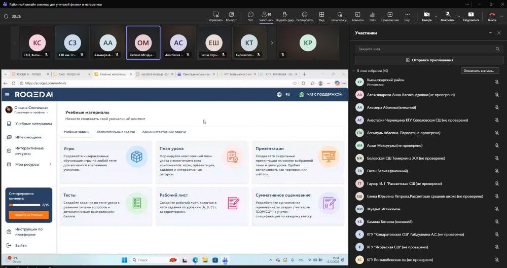 В Кызылжарском районе продолжается активная работа по внедрению передовых технологий в учебный процесс. На платформе Microsoft Teams 12 декабря 2025 года состоялся районный семинар на тему: «Эффективное использование современных инструментов в цифровизации образовательного процесса».
