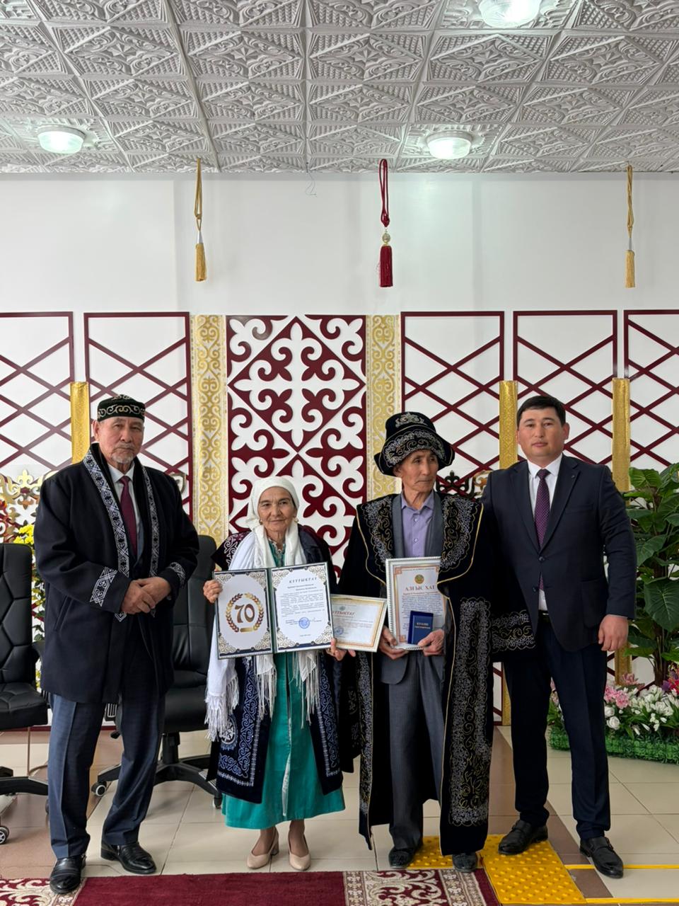В рамках проекта « Жанұя шуағы » концепции культурно-воспитательного центра « АДАЛ АДАМ » проведен вечер встречи с семьей ветеранов Талканбаева Турсынгали и Жумабековой Куанышкуль, которым исполнилось 70 лет.