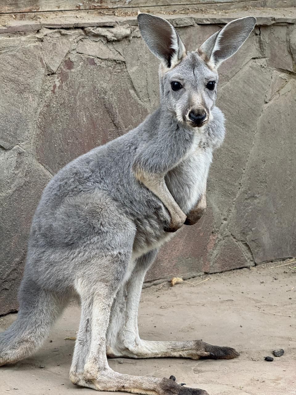 «Особенность кенгуру в том, что момент рождения практически невозможно увидеть. Детеныши появляются на свет очень маленькими — всего несколько сантиметров в длину. Сразу после рождения малыш самостоятельно перебирается в сумку матери, где закрепляется на соске и продолжает развиваться. О пополнении мы узнаем лишь тогда, когда кенгуренок подрастает и начинает выглядывать из сумки. Поэтому дата рождения определяется приблизительно».