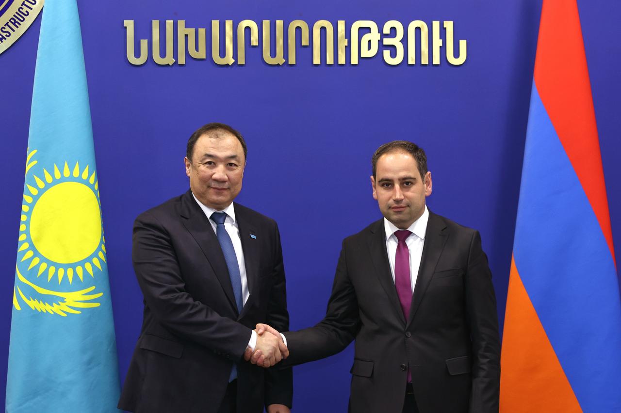 Министр транспорта Республики Казахстан Нурлан Сауранбаев провел встречу с министром территориального управления и инфраструктур Республики Армения Давидом Худатяном.